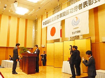 【広島】中国運輸局は1日、広島市内のホテルで「2011年度自動車関係功労者局長表彰式」を開催した。同制度は毎年、販売や整備などの自動車関係事業の国土交通行政で功績が顕著な個人や団体を表彰し、功績をたたえている。11年度は中国5県で合計12...