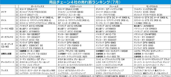 タイヤ部門では、DNAエコスが2チェーンで首位のほかシンセラSN―828、デジタイヤECOも依然好調だ。ZIEX EX912がモンテカルロで3位から2位に上昇した。次世代エコタイヤでは、オートバックス3位にアース1がランクインしたほか、イ...