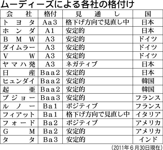 格付け会社ムーディーズ・ジャパンは、トヨタ自動車の長期債務格付けについて記者向けの説明会を行った。同社は6月28日付でトヨタの格付けを1段階引き下げた。今後、日本の国債や銀行の格付けが下がれば、トヨタの格付けもさらに引き下げる可能性がある...