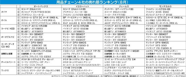 タイヤ部門は前月と大きな変化はなく、DNAエコスが2チェーンで首位のほか、シンセラSN―828、デジタイヤECO、スニーカーも依然好調、ZIEX EX912がモンテカルロで2位を維持した。次世代エコタイヤでは、エナセーブRV503がモンテ...