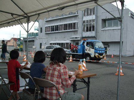 ○…「お父さん頑張れ―」の声が聞こえてきそうな写真のひとコマ。社員の家族を招いて熟練した技術を競う協栄車輌(佐藤正良社長)の「レッカー大会」にちびっ子らが応援に駆け付けた。“働くお父さん”の姿に熱い視線を送った。 ○…同大会は今年で5回目...