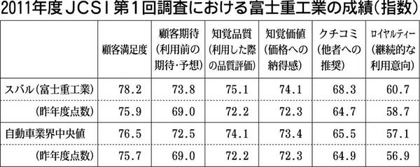 サービス産業生産性協議会(SPRING、代表幹事=牛尾治朗ウシオ電機会長)が21日発表した「2011年度JCSI(日本版顧客満足度指数)第1回調査結果」は、スバル(富士重工業)が自動車業界の顧客満足度1位となった。同調査は様々な業界の企業...