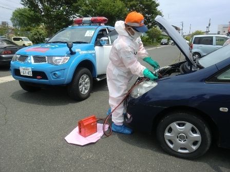 福島第一原発事故による放射能汚染地域。3月12日以降、無人の町や村と化してここは時間が止まったままだ。その警戒地域から被災者のマイカーの引き揚げに汗を流す日本自動車連盟(JAF)ロードサービス隊員たちの姿がある。同九州本部(有田耕一本部長...