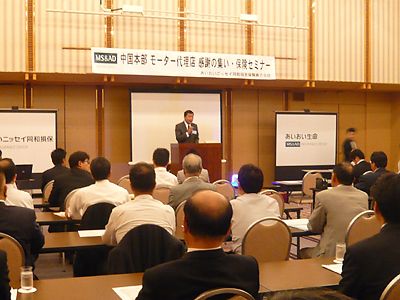 【広島】あいおいニッセイ同和損害保険中国本部(杉本淳二本部長)は広島市中区で「中国本部モーター代理店感謝の集い保険セミナー」を開催した。同セミナーには中国地区の代理店から32人の代表者らが出席した。 セミナーに先立ち東日本大震災の復興メッ...