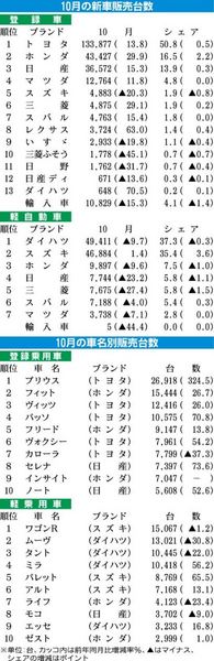 日本自動車販売協会連合会(自販連、天野洋一会長)が6日にまとめた10月の登録乗用車車名別販売ランキングによると、トヨタ自動車の「プリウス」が2万6918台となり、6カ月連続でトップとなった。1~10月の累計販売台数は約16万台に達した。 ...