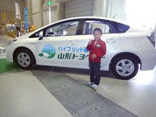 ○…「テレビと一緒だよ」「かわいい」といった声が寄せられたのは、地元メディアが主催する環境関連イベント会場の一角に設けられた山形トヨペット(鈴木寿昭社長)の展示ブースだ。会場を訪れた子供たちは、TVCMなどですっかりお馴染みの『こども店長...