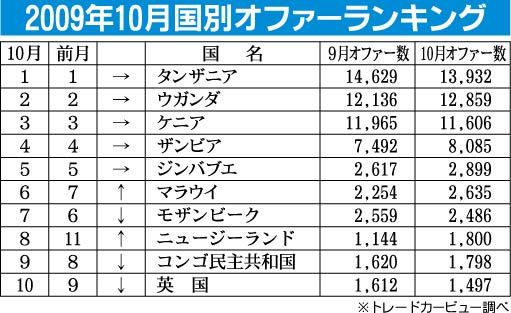 カービューは、自社で運営する中古車輸出支援サイト「トレードカービュー」に寄せられた10月のオファー(問い合わせ)数ランキングを国別にまとめた。これによると1位は「タンザニア」変わらず、2~5位の「ウガンダ」「ケニア」「ザンビア」「ジンバブ...