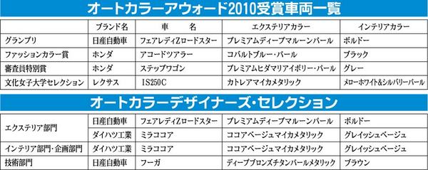 日本ファッション協会流行色情報センター(JAFCA、馬場彰理事長)は15日、東京都渋谷区の文化女子大学で「オートカラーアウォード2010」の二次審査会と発表会を開催した。優れた色彩を採用して、自動車のエクステリアとインテリアの魅力を引き出...