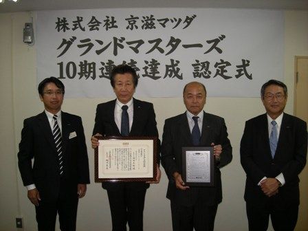 【京都】京滋マツダ(津田正樹社長、京都市南区)はこのほど、三井住友海上火災保険の最上位代理店資格「グランドマスターズ」を10期連続で獲得した。5月末で、ディーラー特級取得全724代理店中、10期連続認定は約5%にあたる39社にとどまり、同...