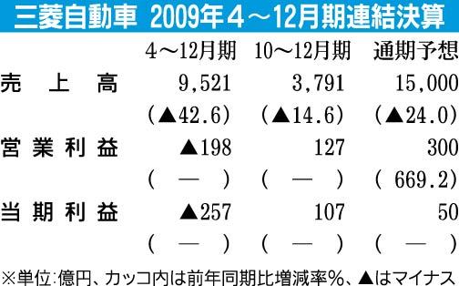 三菱自動車、2009年10~12月期業績が5四半期ぶり黒字転換
