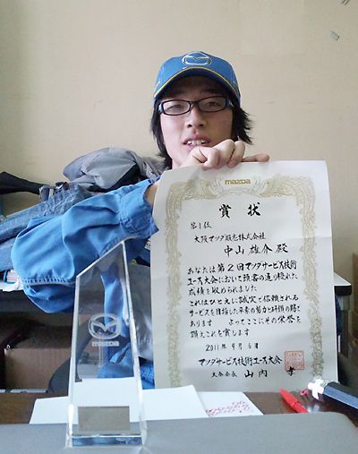 「信じられない思いとうれしい気持ちが交錯した」と話す、大阪マツダの中山雄介さん(24)。9月に広島県坂町のマツダトレーニングセンター鯛尾で実施された「第2回サービス技術ユース大会」で見事優勝を果たした。 今大会は、全国マツダディーラーの若...