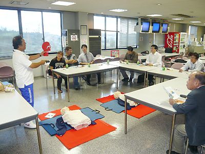 【水戸】茨城県中古自動車販売商工組合(JU茨城、磯崎孝理事長)青年部会(大山晃弘部会長)は9月28日、小美玉市のJU茨城オークション(AA)会場で、AEDの使用方法などについて学ぶ救急法の「セミナー」を実施した。 人命救助に役立ててもらう...