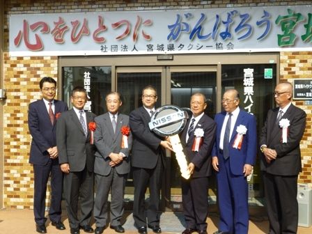 【仙台】日産自動車が宮城県のタクシー事業者にユニバーサルデザイン(UD)タクシーを5台無償貸与したことを受け、仙台市若林区にある宮城県タクシー協会(佐々木昌二会長)で8日「車両引渡式」が行われた。宮城県の日産各販社社長とUDタクシーを受け...
