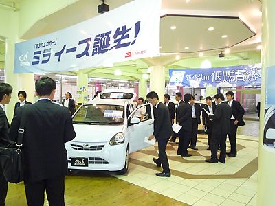 ダイハツ工業とダイハツ東京(小谷忠幸社長)は13日、ダイハツ東京の本社・Dモール月島店ショールームで都内法人を対象に新型「ミラe:S(イース)」の展示・試乗会を開催した。JC08モードでリッター30キロの低燃費に関心が高く、364人の来場...