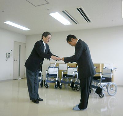 【松山】損害保険ジャパンが支援するAIRジャパン愛媛会員のオートエボリューション(青野聡太社長、愛媛県松山市)は、売上金の一部で購入した車椅子10台を社会福祉法人喜久寿の高齢者総合福祉施設「ウェルケア重信」(東温市)に寄贈した。 同社は社...