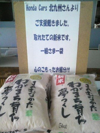 ○…「できる限りの支援と我々の心を届けたい」。原発事故による高い放射線問題で商売や社員の生活に不安を抱える福島県のホンダディーラーを支援しようと、ホンダカーズ北九州(梶谷利徳社長)は、福岡県宗像産の新米「つくしロマン」2トンを、ホンダカー...