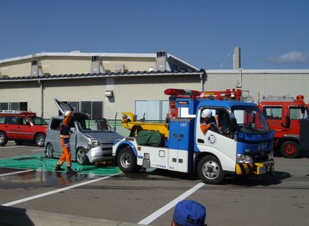 【金沢】日本自動車連盟(JAF)石川支部(要明英二支部長)は18日、小松市の「スカイパークこまつ翼」で開催した平成23年度高速道路総合訓練に参加した。 この訓練は、北陸自動車道を利用する危険物運搬車両の多重衝突事故を想定し、事故発生時に各...