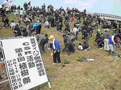 滋賀ダイハツ(後藤敬一社長)は3日、びわこ地球市民の森(守山市)で「滋賀ダイハツ CSR活動 第8回植樹祭」を実施した。同社従業員と家族、同社顧客ら500人以上が参加した。 植樹に先立ち、後藤社長は「CO2を排出する企業として二酸化炭素を...