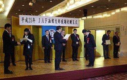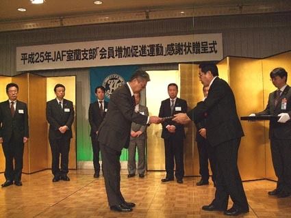 ◆室蘭 【苫小牧】日本自動車連盟(JAF)室蘭支部(山野下義信支部長)は「平成25年JAF感謝の会」を市内のホテルで開催。昨年の入会促進で優秀だった自動車販売店などに感謝状を贈呈した。また同支部は4月1日にJAF札幌支部と事務所統合する。...