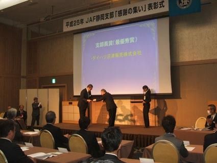 【静岡】日本自動車連盟(JAF)静岡支部(杉山智彦支部長)は7日、静岡市葵区のホテルで「平成25年JAF静岡支部感謝の会」を開催した。昨年1~12月にJAF会員の増加に功績があった静岡県下の自動車販売店と営業スタッフの労をねぎらい感謝状を...