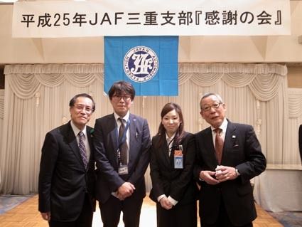 【津】日本自動車連盟(JAF)三重支部(JAF三重、川喜田久支部長)は13日、津市内のホテルで「平成25年JAF三重支部感謝の会」を開催した。昨年1年間の会員獲得に貢献した販売店とスタッフに感謝の意を表する会で、各ディーラー代表や優秀スタ...