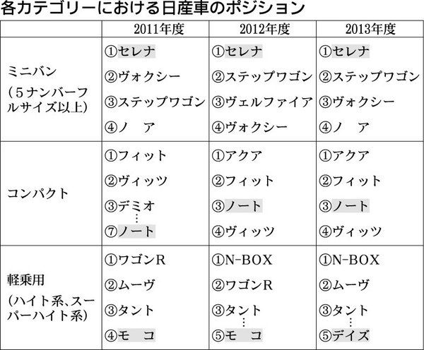 日産自動車の片桐隆夫副社長(日本事業担当)は本紙のインタビューで「ノート、デイズもミニバンにおけるセレナと同じように、トップクラスのブランドにしたい」と述べ、コンパクトカー「ノート」と軽乗用車「デイズ」をそれぞれのカテゴリーでトップクラス...