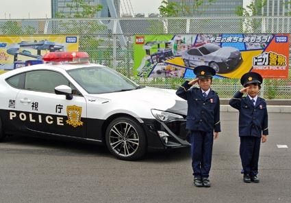 タカラトミーとメガウェブのコラボで誕生した世界で1台の「トミカ警察 トヨタ86パトロールカー」。7月19日までメガウェブで展示し、子ども用の警察官衣装を着て記念撮影もできる。9月以降はメガウェブのコースで一般向けの試乗を開始する。 タカラ...