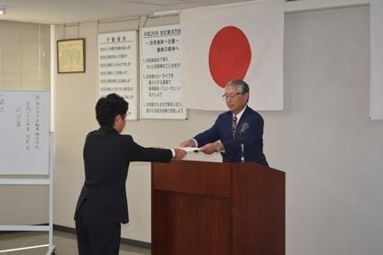 【熊本】熊本トヨタ(與縄義昭社長)は3日、熊本市南区の本社で「平成26年度内定式」を開催した。来春入社予定の10人の内定者を集め、與縄社長が内定証を手渡した。内定者は営業職4人、サービス職6人で、営業職のうち2人が女性。内定者を代表して境...