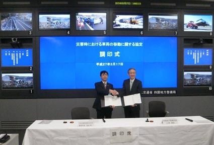 【高松】日本自動車連盟(JAF)四国本部(向井幸司本部長)と四国地方整備局(三浦真紀局長)は17日、高松市内の高松サンポート合同庁舎で「災害時における車両の移動に関する協定」を締結した。災害時、四国地方整備局から依頼を受けたJAF四国本部...