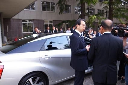 福島トヨタと福島トヨペット、県庁でミライ披露