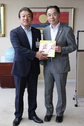 【千葉】あいおいニッセイ同和損害保険の千葉支店(田邉寿彦支店長)はこのほど、市原市に車いす1台と同社が企画した絵本10冊を寄贈し、5万円を寄付した。 田邉支店長ら同社の社員が市役所を訪れ、小出譲治市長に目録を手渡した。この席で小出市長と田...