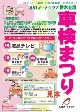 【宇都宮】AIRオートクラブ栃木支部(塚越紀夫支部長)は「車検まつり」を開催。キャンペーン期間は12月末まで。 キャンペーン期間中に同支部の会員工場に車検入庫したユーザー、車を購入したユーザーに抽選で各賞品を131人にプレゼントする。 各...