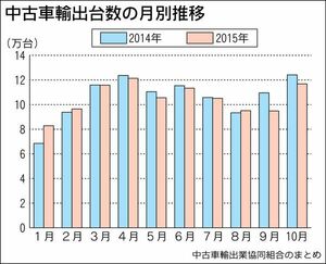 2015年の中古車輸出台数は、10月までの累計で前年同期比1・3%減の104万7千台と昨年を下回っている。近年市場をけん引してきたロシアの情勢不安、キルギスの右ハンドル規制による大幅な台数減少や、中国経済低迷による新興国の通貨安が響いた。暦年で前年割れならば09年のリーマンショック以来6年ぶりの減少となる。そうした中で、税制改正など不安要素が多か…