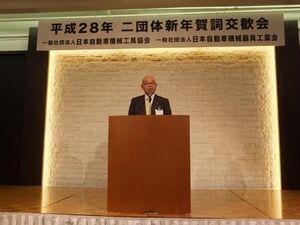 日本自動車機械工具協会(機工協、中谷良平会長)と、日本自動車機械器具工業会(自機工、山口伸一郎理事長)は8日、都内で「自動車機械工具二団体新年賀詞交歓会」を開催した。関係省庁や取引先メーカー、業界関係者らが大勢駆けつけ、新年にかける思いに話を弾ませた。機工協の中谷会長は「次世代自動車の新機能であっても、正しく作動していることが見えるようにする機器…