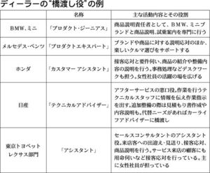 国産車と輸入車のディーラーで、来店客と営業スタッフの間に“橋渡し役”を設ける動きが広がっている。その役割は、ブランドと商品の説明や、接客応対とニーズの把握などさまざま。いずれも販売が主任務でない新職種の応対で敷居を下げている。営業スタッフが商談活動に専念できるよう分業化することで、接客全体を通じた顧客満足(CS)の向上と商談成立件数の増加につなげ…