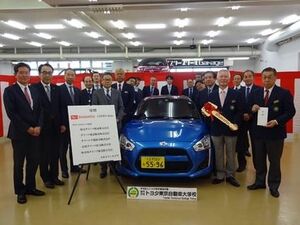 関東のダイハツディーラー5社は16日、トヨタ東京自動車大学校(松浪良樹校長、東京都八王子市)に2人乗り軽オープンカー「コペン ローブ」を寄贈した。自動車整備士教育支援の一環として行ったもので、寄贈式には埼玉ダイハツの山口雅行社長、ダイハツ東京の玉井政文社長、ダイハツ千葉の廣瀬義宏取締役、山梨ダイハツの田中治行社長、神奈川ダイハツの松川輝義社長ら1…