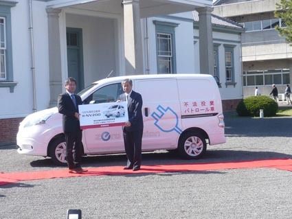 【高松】日産自動車と日産プリンス香川(久保智彦社長)は22日、香川・善通寺市に商用電気自動車(EV)「日産e―NV200」1台を3年間無償で貸与し、同市役所で貸与式を行った。 これは日産が全国の自治体を対象に実施している「電気自動車活用事...