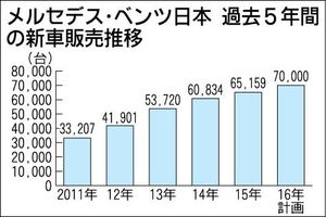 メルセデス・ベンツ日本(MBJ、上野金太郎社長、東京都港区)は、2016年のメルセデス・ベンツブランドの新車販売で前年比7・4%増の7万台を目指す。7万台超えが実現すれば初めてで、年販記録更新も4年連続となる。10車種を超える新型車の投入計画を柱に、販売体制の拡充と新機軸のマーケティング活動で新たな顧客の開拓を進める。新車攻勢や販売網拡充の姿勢を…