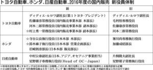 トヨタ自動車、ホンダ、日産自動車が4月1日付で国内販売の役員体制を一新した。トヨタは佐藤康彦常務役員が国内販売事業本部の本部長に昇格、新任の村上秀一常務役員を同本部の副本部長に就けた。ホンダは、ともに50代前半の寺谷公良執行役員(日本本部長)、鈴木麻子執行役員(同・営業企画部長)という若い顔ぶれで新体制を組んだ。日産はアジア・オセアニア担当の中村…