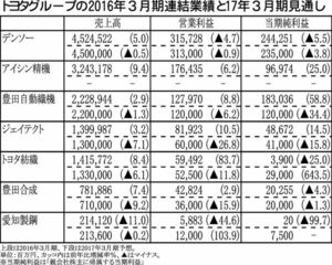 トヨタ系大手部品メーカー7社は28日、2016年3月期決算を一斉に発表した。売上高で6社が過去最高となったのに対して今期(17年3月期)の見通しは一転して、そろって減収減益の見通し。最大の要因は対ドルで10~15円の円高を想定する為替変動で、為替を同じ条件で見た場合の実質では増収増益や前期並みになる企業が多い。ただ、熊本地震による影響を現時点では…