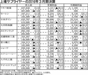 トップ 自動車部品・素材・サプライヤー 【上場サプライヤーの2016年3月期決算】