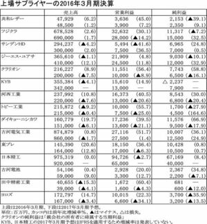 トップ 自動車部品・素材・サプライヤー 【上場サプライヤーの2016年3月期決算】