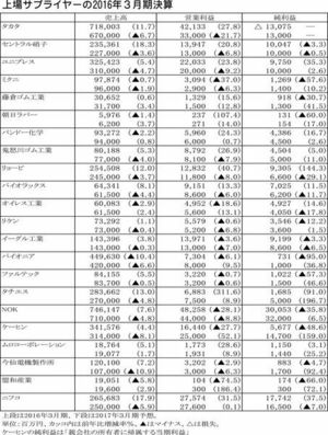 トップ 自動車部品・素材・サプライヤー 【上場サプライヤーの2016年3月期決算】