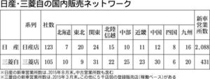 日産自動車と三菱自動車が軽自動車事業を存続させるために決断した資本提携は、両陣営の系列ディーラーにも大きな影響をおよぼす可能性がある。焦点となるのは、提携後の「商品戦略」と「販売効率」だ。日産が三菱自を傘下におさめ、軽自動車だけでなく登録車も商品共有することを選択した場合は別ブランドで手がける意義が薄れる。日産と三菱の販売実績と新車営業拠点を合計…