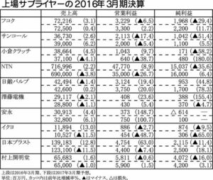 【上場サプライヤーの2016年3月期決算】