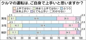 パーク24が実施した「運転テクニック」に関するアンケートで、約3割のドライバーが自身の運転を「上手い」と評価していることがわかった。「月に1回程度」と運転回数が比較的少ないドライバーでも25%が「上手い」と回答している。運転が「上手い」と考えているドライバーは、必ずしも運転回数が多いというわけではないようだ。運転を得意と考えるドライバーがいる一方…