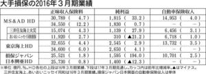 大手損害保険3グループの2016年3月期の連結決算は、東京海上ホールディングス(HD)、損保ジャパン日本興亜HD、MS&ADインシュアランスHDの3社とも過去最高となった昨年と同水準の純利益を確保した。主力の自動車保険が暖冬による交通事故の減少で保険金の支払いが減るなど好調。火災保険の長期契約を販売停止することによる駆け込み需要も業績に寄与した。…