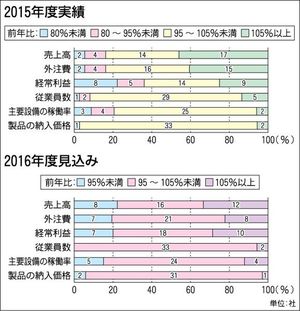 日本自動車機械器具工業会(自機工、山口伸一郎理事長)は「2016年度企業動向調査」の結果をまとめた。それによると、15年度の売上高は約45%の企業が対前年比で「増加」と答えた。一方、経常利益では「増加」と回答した企業が前年度の19社から9社に減少。景気の減速が懸念される結果となった。賃金改善状況ではベースアップ(ベア)を実施した企業が20社に達し…