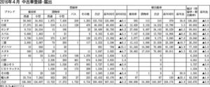 2016年4月の中古車(登録車と軽自動車の合計)台数は、前年同月比3・9%減の54万3676台だった。登録車、軽自動車ともに前年同月を下回った。前年実績を上回ったのは、いすゞ自動車、日野自動車、UDトラックスの商用車3社のみ。普通トラックのカーゴ系や訪日外国人の増加による大型観光バスの需要増が台数を押し上げた格好だ。登録車は「熊本地震や三菱自動車…