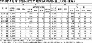 国土交通省は2016年4月末時点の認証・指定工場数および新規・廃止状況をまとめた。認証工場数は前月比117件減の9万2048件で2カ月連続で減少。指定工場数は同19件減の2万9846件だった。専門認証工場数は6778件で前月比2件減り、連続増加期間は32カ月で止まる結果となった。4月は減少幅が大きい月で、毎年100件前後減少する傾向が続いている。…